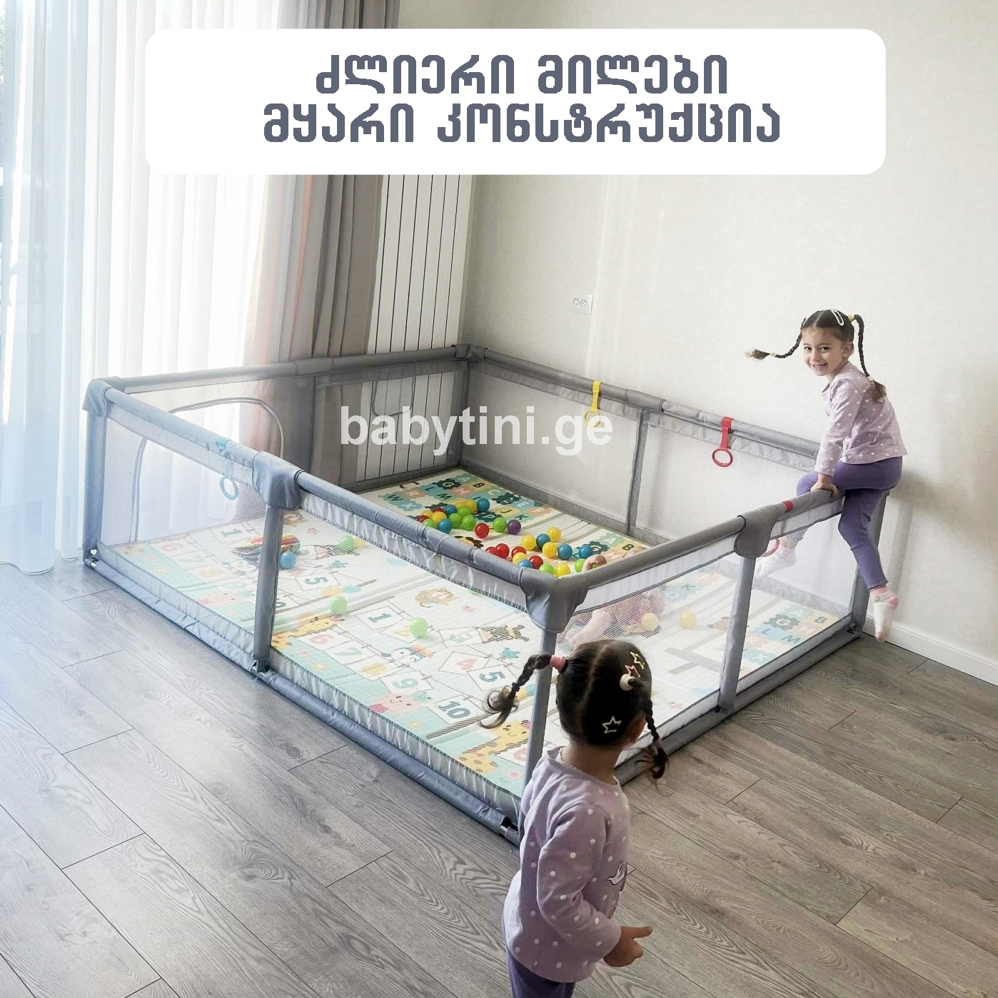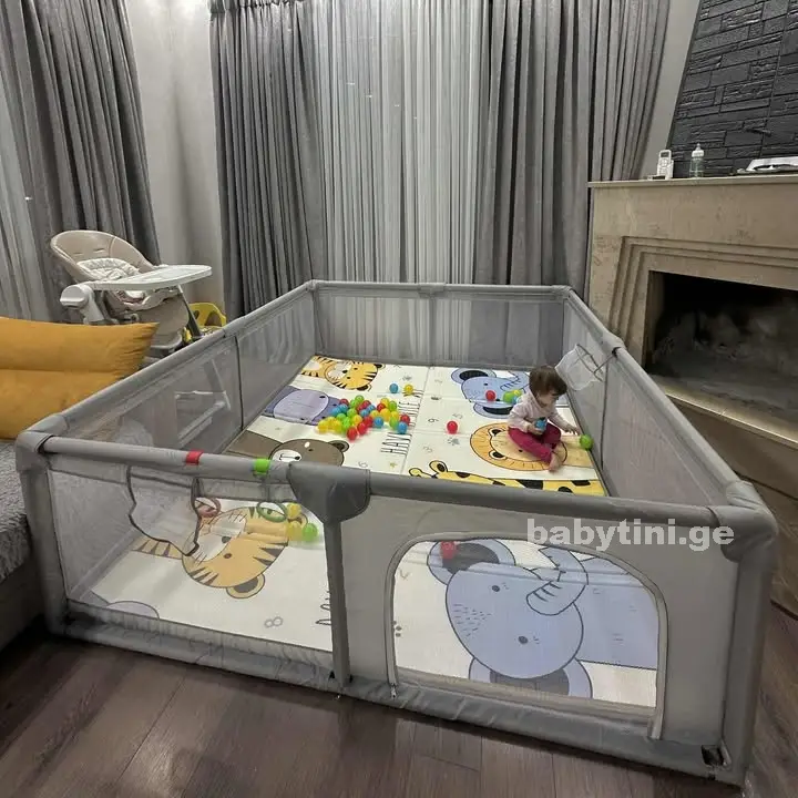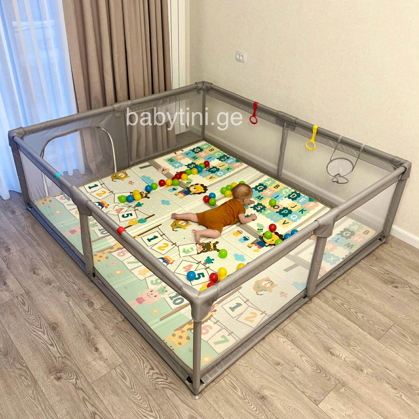დიდი ზომის უსაფრთხო სათამაშო სივრცე თქვენი პატარებისთვის. მანეჟის კონსტრუქციისთვის გამოყენებულია საუკეთესო ხარისხის მასალა, სქელი და მყარი მილები. გამოიყენება როგორც სახლში, ასევე გარეთ.