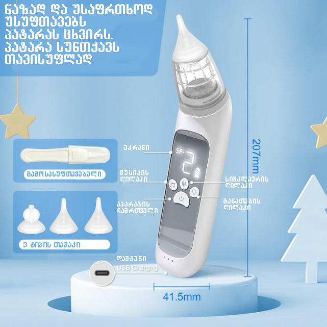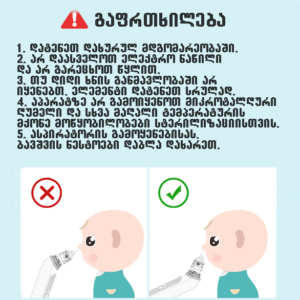 ასპირატორის საშუალებით შეძლებთ პატარას ცხვირის გამოტუმბვით გასუფთავებას სწრაფად და უმტკივნეულოდ. სპეციალური რბილი სილიკონის თავაკები პატარას ცხვირს არ გაუღიზიანებს. ეფექტურად აშორებს ცხვირიდან ლორწოს. გაეცანით ინსტრუქციას და გამოყენების წესს (მოყვება).