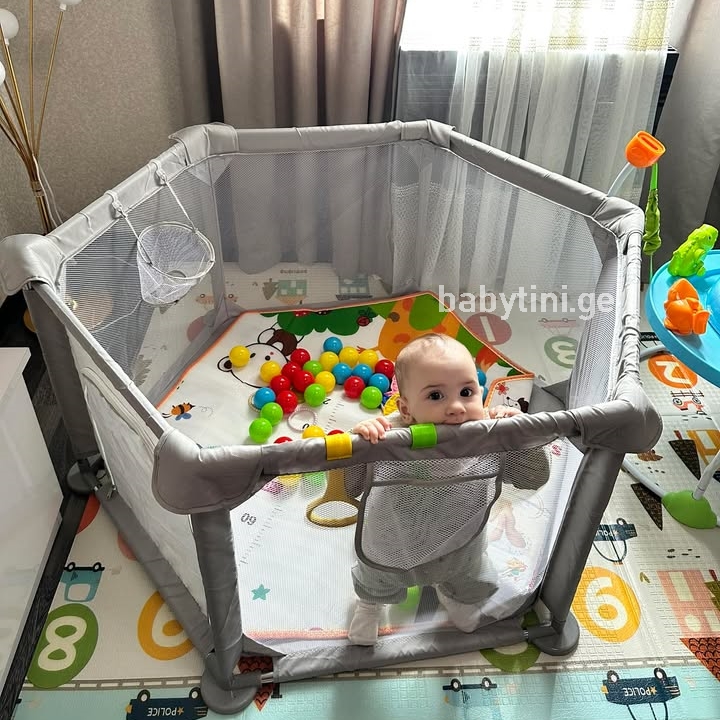 უსაფრთხო სათამაშო სივრცე თქვენი პატარებისთვის (ექვსკუთხედი). გამოიყენება როგორც სახლში, ასევე გარეთ.