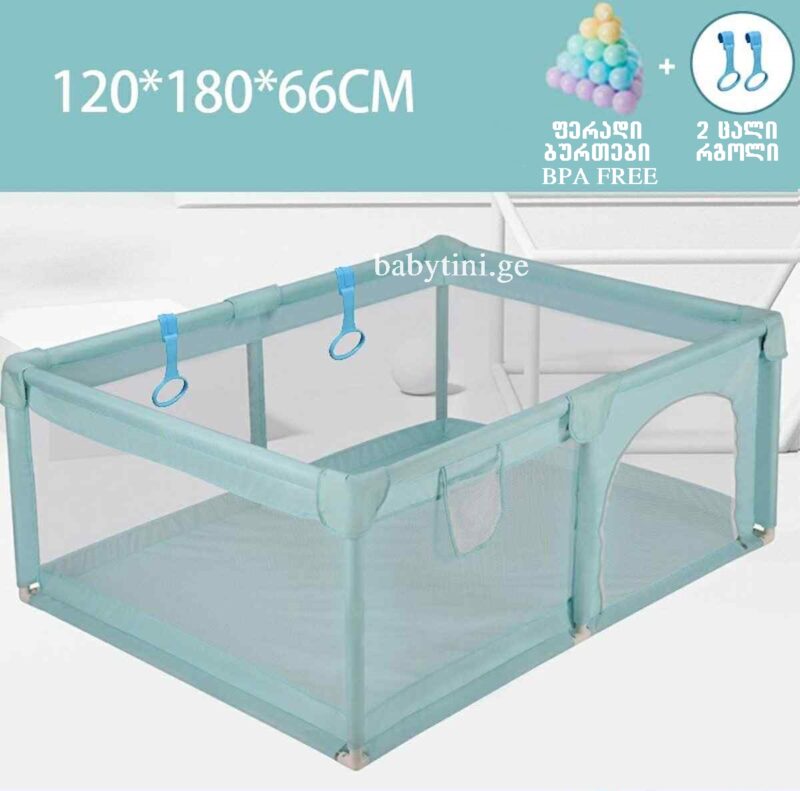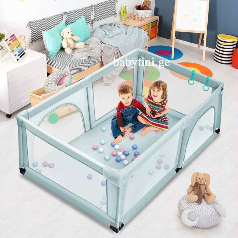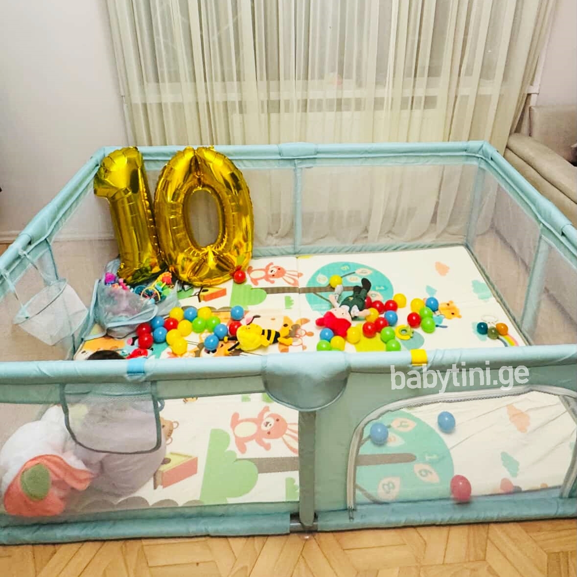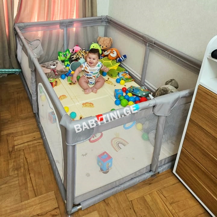 უსაფრთხო სათამაშო სივრცე თქვენი პატარებისთვის (მანეჟი). გამოიყენება როგორც სახლში, ასევე გარეთ.