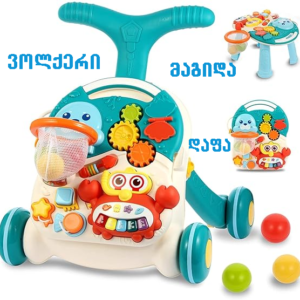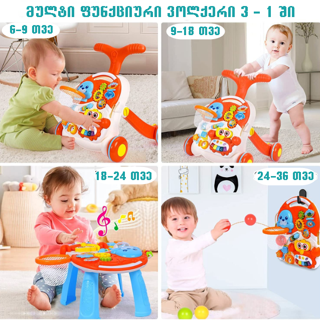 3-1 ში საბავშვო ვოლქერი და განმავითარებელი მაგიდა არის მულტიფუნქციური. აქვს გამორჩეული ფუნქციონალი, დახვეწილი დიზაინი და ხარისხი, რომელიც უზრუნველყოფს თქვენი პატარას კომფორტს ყველაზე მნიშვნელოვან დღეებში. ეხმარება პატარას სიარულის დაწყებაში, იდეალურია ადრეული განვითარების ეტაპისთვის, ავითარებს ასევე მოტორულ და სენსორულ უნარებს.